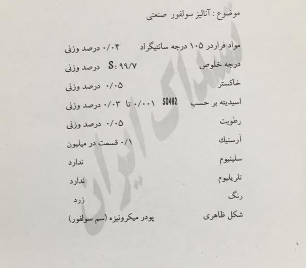 To see the technical specifications of Industrial Sulfur click on the following file: